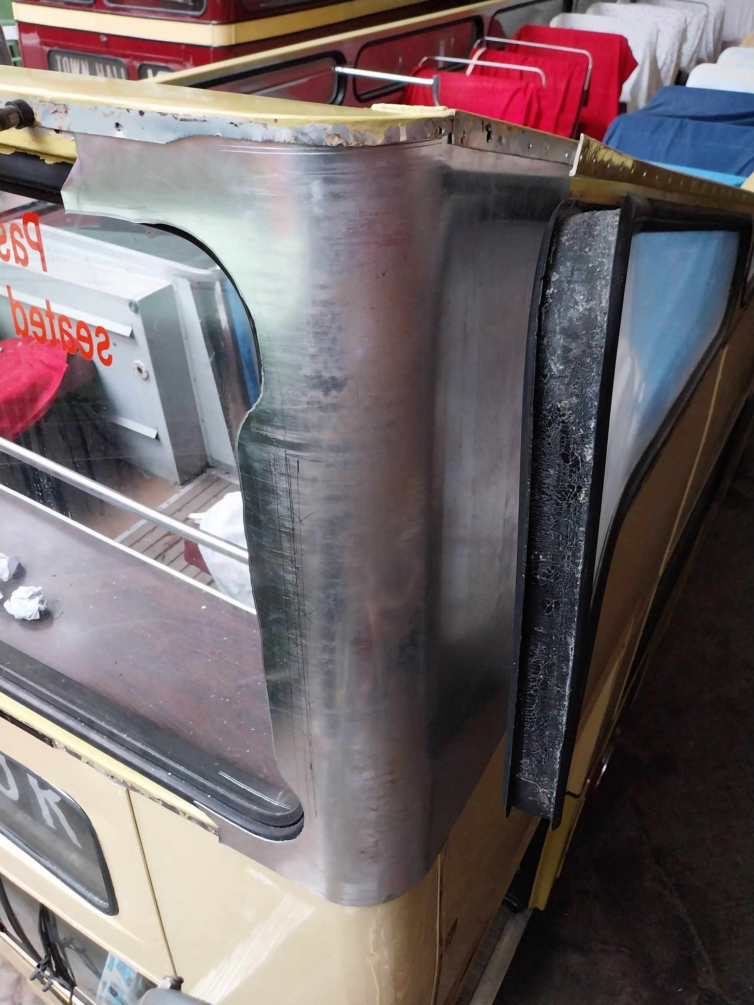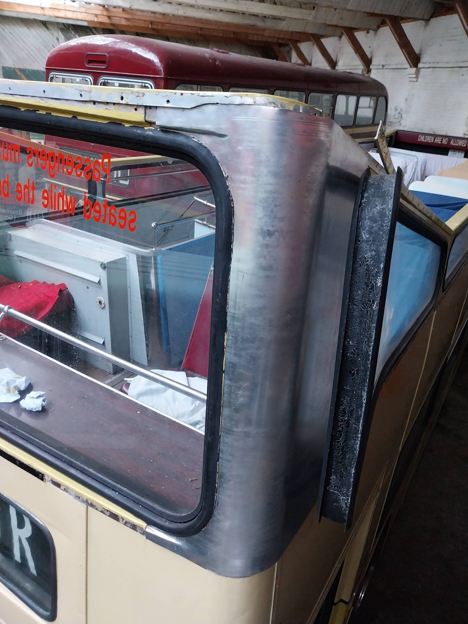 Time for an update on more work that has been carried out over the last couple of weeks regarding some of the re-panel work being carried out on the bus. Fabrication has got underway with the offside top deck corner panel. This had to be completed in several stages to allow all the correct radius to be formed. Matt