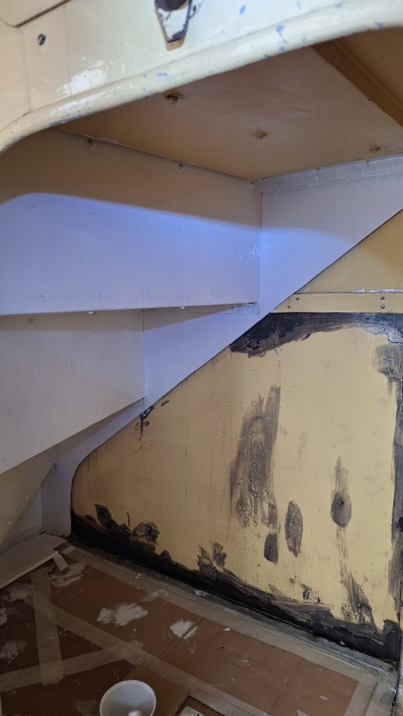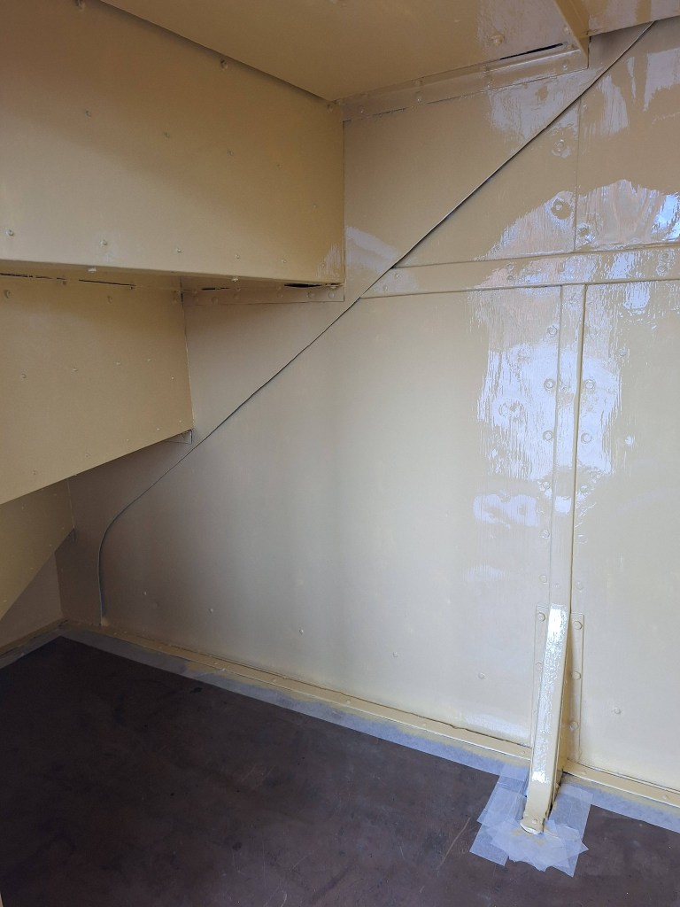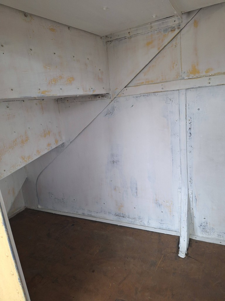 Working in such a confined space (and painting cream onto white!) has made it tricky to see coverage in places, so it’s a little thin here and there — but that’ll be easily sorted with a second coat after BusFest. Andy